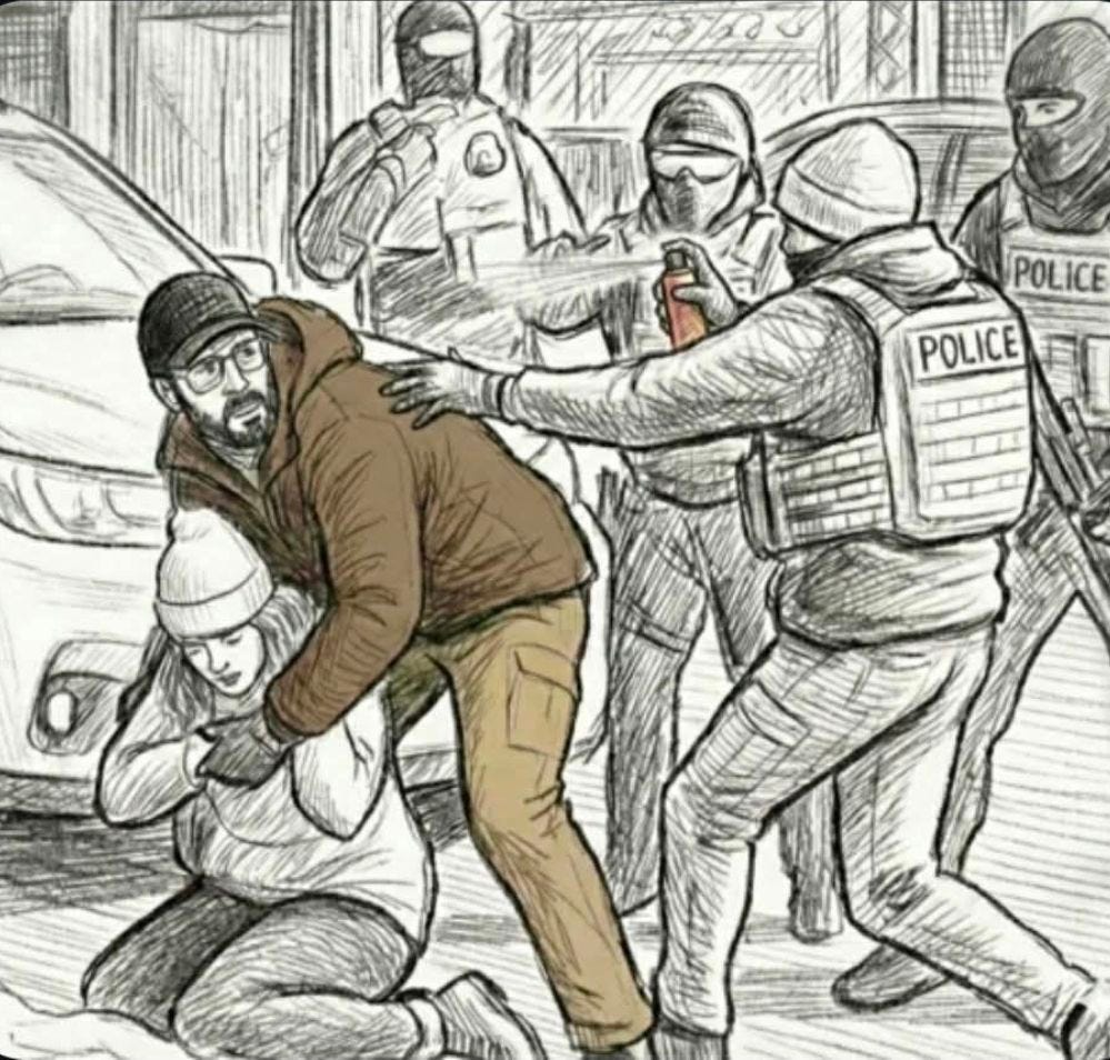 Ignored by the liberal media in Minneapolis is the extreme degree of risk to which those heroic 6 to 8 law enforcement officers were subjected as they forced this terrifying male nurse down on his knees on the icy ground. Mr Pretti had a weapon! True, he wasn’t brandishing it threateningly in the faces of other humans in the style of Kyle Rittenhouse or Israeli settlers. Nevertheless, we know that he planned to use this concealed weapon to massacre law enforcement agents, as has been solemnly asserted to us by no less a figure than empty-eyed Trump loyalist Stephen Miller. Fortunately for every human being on that street in Minneapolis, one of the officers managed to confiscate the offending weapon before Mr. Pretti could use it to spray gunfire into the mass of the officers and probably hit bystanders as well. Even without his weapon, Pretti clearly represented a terrifying mortal threat to the 6 to 8 masked vigilantes, er, paramilitaries, er, I mean law enforcement agents struggling so valiantly to keep him pinned faced down in the snow. Maybe if there had been 20 officers manhandling Pretti they may have felt a little safer. Even when swarmed by these 6 to 8 officers and forced onto his knees, this woman-helping monster was clearly ready to go all jihad on them. Might the deceptively hippy-ish do-gooder even have wielded a concealed knife, or a bazooka? How could the officers have known for sure? If they had failed to act decisively by shooting Mr Pretti repeatedly in the back as he crouched beneath them, they could all have died. The lesson we have learned here is that it is always better to shoot first and ask questions later, which coincides nicely with US foreign policy over the past decades or centuries.